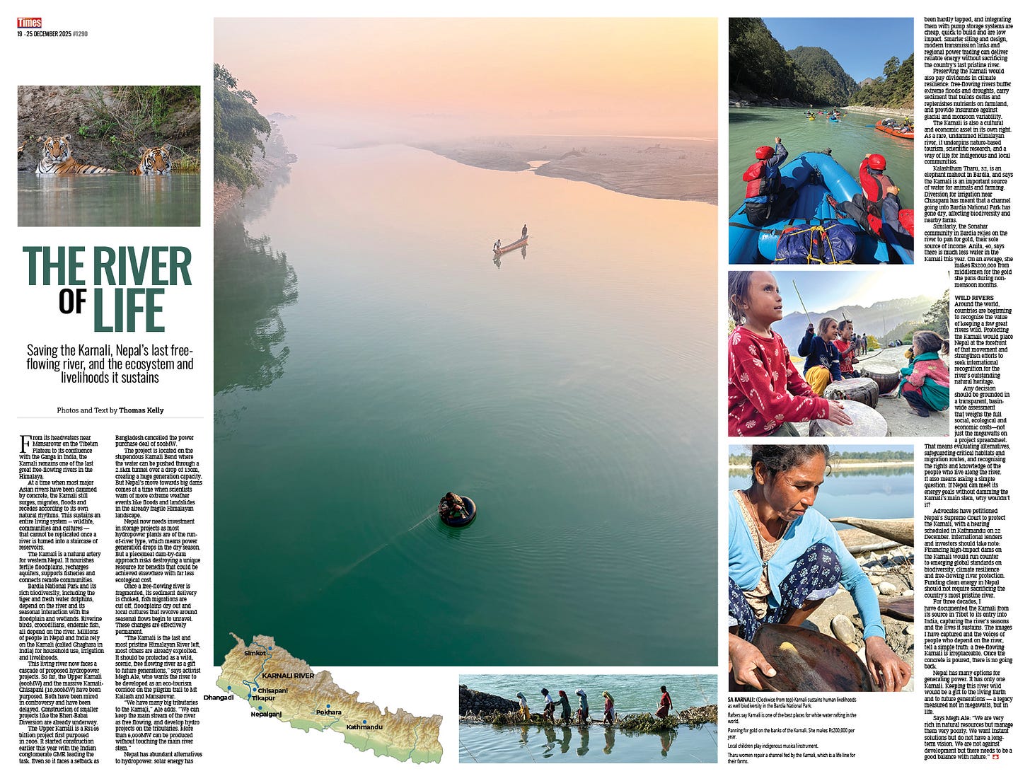 Enjoy the centrefold photo-feature by Thomas Kelly about the Karnali, Nepal’s only remaining major river that is free-flowing, and why it is important to save it from over-development (The River of Life by Thomas Kelly, page 6-7).