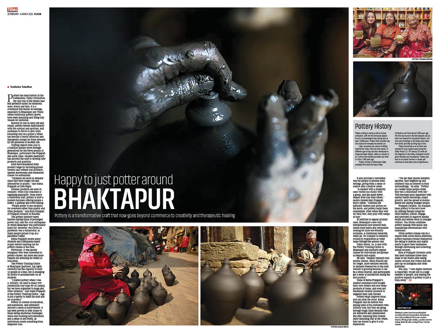 The centrefold this week is on the enduring tradition of pottery in Bhaktapur and Thimi. Sudiksha Tuladhar speaks to the Prajapati clan which is adding a new art and therapy dimension to its ancestral profession (Pottering About in Bhaktapur, page 6-7).