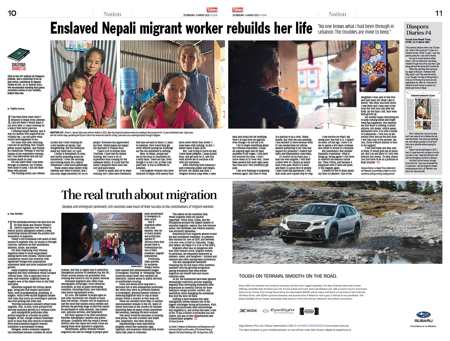 The latest 58th episode of Diaspora Diaries is the inspiring story of Sajita Lama, who trustingly raised the children of a Lebanese family, but was not paid for 12 years. Nepali Times carried her heart-wrenching story in Diaspora Diaries #4 in 2022, and has followed up with Sajita three years later to find that with help from her mother, she is making a living as a cook (Enslaved Nepali Migrant Worker Rebuilds Her Life, page 10-11).