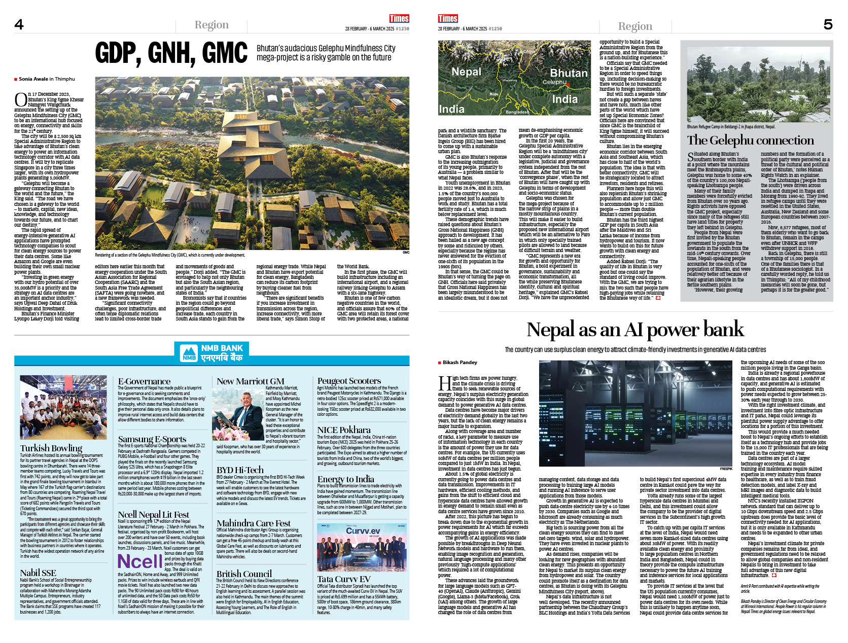 Bhutan is trying to get this balance right, and is opening up to the outside world with its grandiose new Gelephu Mindfulness City project. The kingdom may also be looking beyond its Gross National Happiness ideology to connect to the globalised world of IT. Sonia Awale travels to Bhutan to see how its leaders are looking beyond its hydropower-driven growth model (Small Bhutan Dreams Big, page 1 and 4-5).
